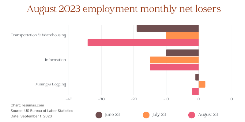 Converse to the positive growth witnessed in certain areas, the transportation and warehousing sector recorded a substantial shedding of 34,000 jobs in August due to business closures. The information sector too, faced a drawback, losing 15,000 jobs during the month.
