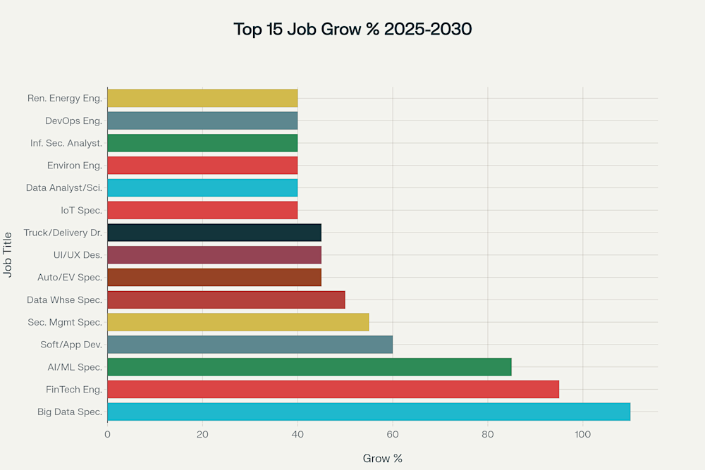 1. Big Data Specialists (110% growth): Managing massive datasets, implementing data lakes, creating predictive models[8][7]